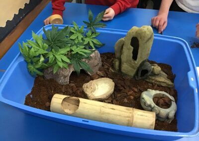 We undertook activities with the pets to enable the creation of drawings, storytelling and literature.